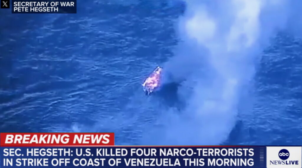 Förstanyheten i morse på Sveriges Radio var Tullverkets larm om knarksmuggling från USA till Sverige. Samtidigt diskuterar man i USA de attacker som utförts på båtar vid Venezuelas kust. USA:s administration hävdar att de är knarksmugglarbåtar med ”narkoterrorists” ombord. De bombas och besättningen dödas.