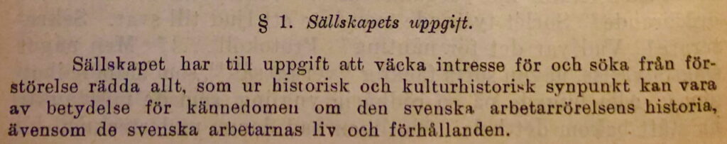 Sällskapets stadgar antogs 1926. Medlemsavgiften var 2 kronor per år, ungefär 70 kronor idag.