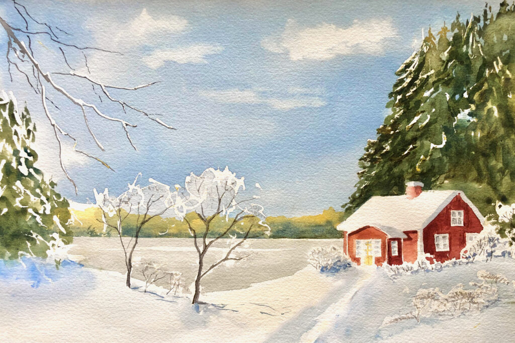 Den här bilden målade jag när jag bodde i Tanzania och bara hade tillgång till snö på toppen av Kilimanjaro, dit jag inte lyckades ta mig. Jag fick nöja mig med att titta på den.